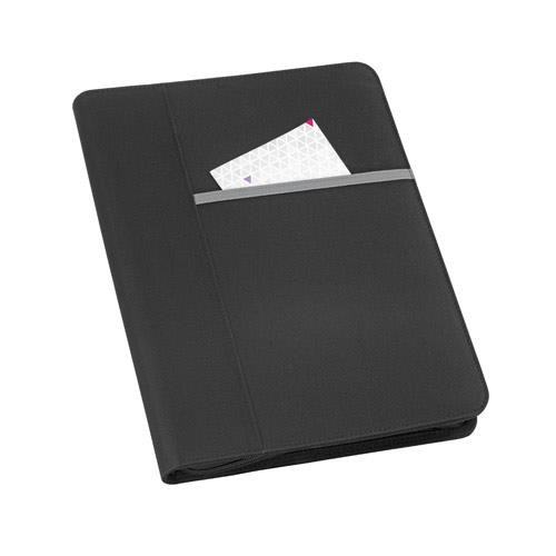 Teczka A4 wykonana z materiału 600D, z zewnętrzną kieszenią z przodu i zapięcie na zamek. Teczka posiada 4 kółka po 20 mm w środku, które pozwalają na przypięcie kartek A4. W środku blok z 40 liniowanymi stronami, uchwyt na długopis (długopis nie jest dołączony) oraz przegródki na akcesoria (nie są dołączone). 260 x 340 x 35 mm