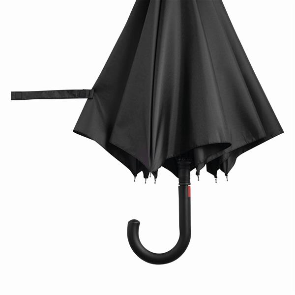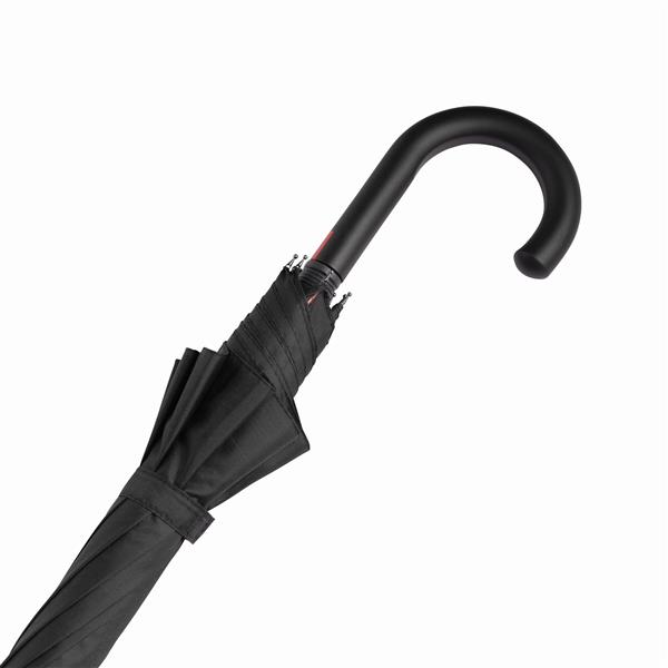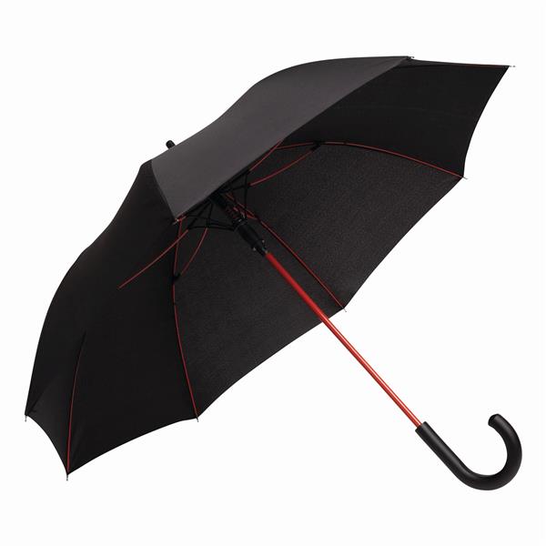 Automatyczny parasol CANCAN z metalową laską oraz kolorowymi szynami z segmentami z włókna szklanego, metalowymi kolcami, wykończona gumą laska z wbudowanym kolorowym automatycznym przyciskiem, poszycie z poliestru pongee i paskiem spinającym zapinanym na rzep. Materiał: Metal/Włókno szklane/Poliester Kolor: czarny, czerwony Tagi: parasole,parasole