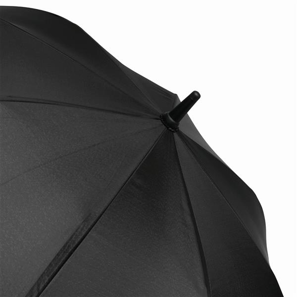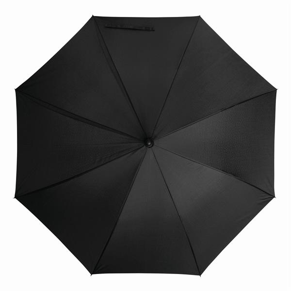 Automatyczny parasol CANCAN z metalową laską oraz kolorowymi szynami z segmentami z włókna szklanego, metalowymi kolcami, wykończona gumą laska z wbudowanym kolorowym automatycznym przyciskiem, poszycie z poliestru pongee i paskiem spinającym zapinanym na rzep.