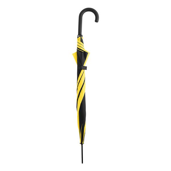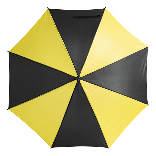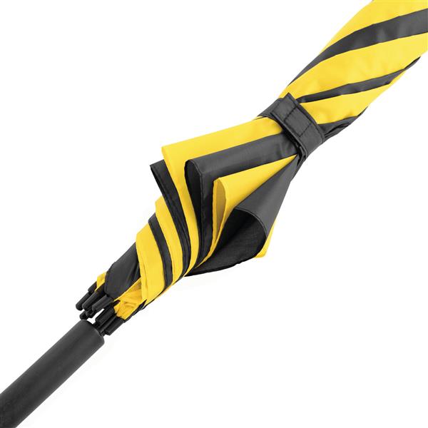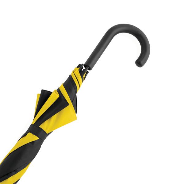 Automatyczny parasol DISCO. Poszycie z poliestru 170 T, metalowa laska i szyny, zaokrąglony, plastikowy uchwyt w kolorze poszycia. Materiał: Metal/Poliester Kolor: czarny, żółty Tagi: parasole,parasole