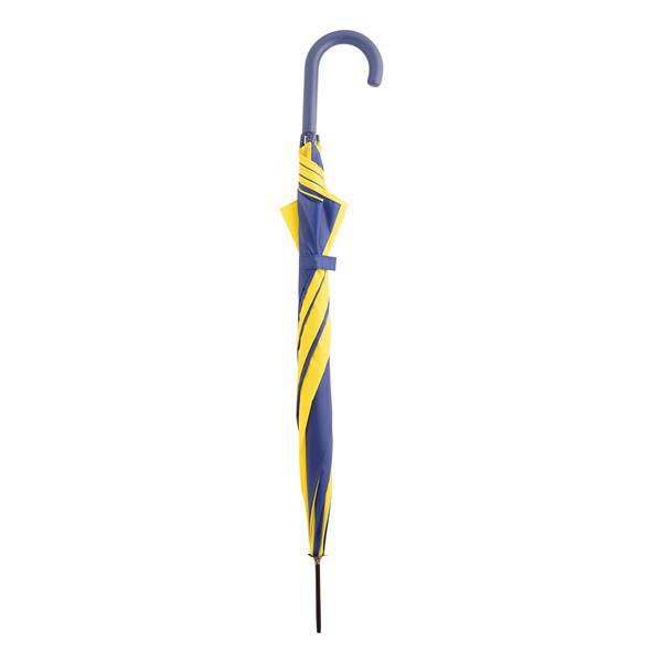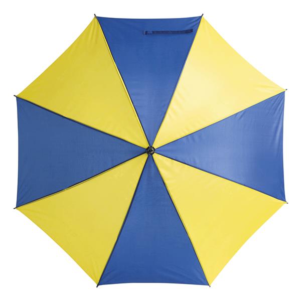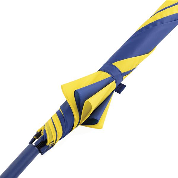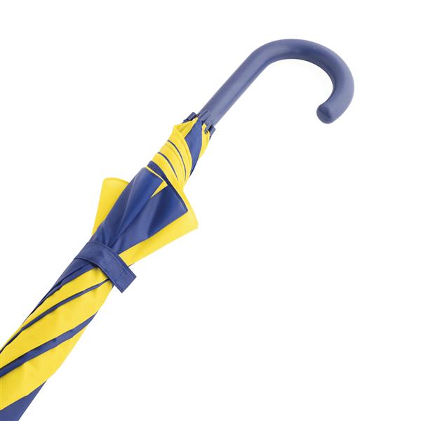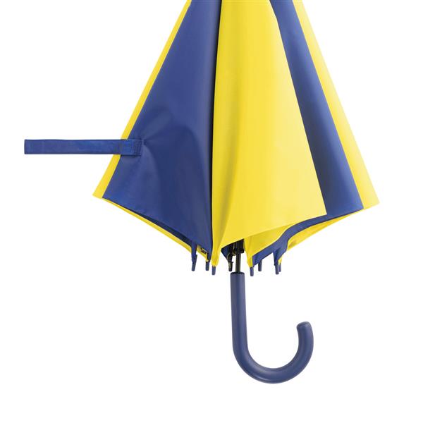 Automatyczny parasol DISCO. Poszycie z poliestru 170 T, metalowa laska i szyny, zaokrąglony, plastikowy uchwyt w kolorze poszycia. Materiał: Metal/Poliester Kolor: niebieski, żółty Tagi: parasole,parasole