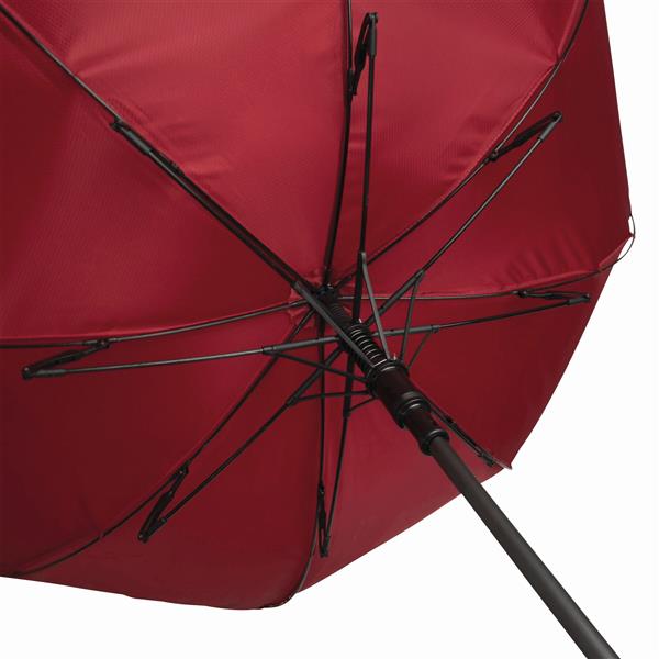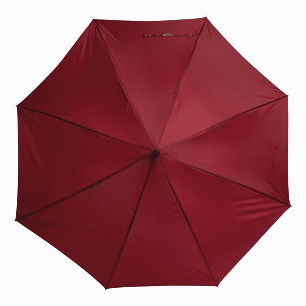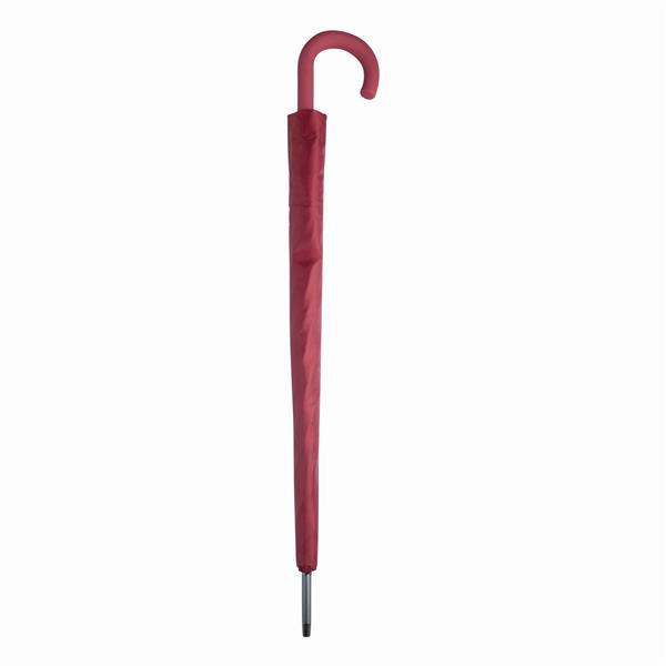 Automatyczny parasol JUBILEE. Aluminiowa laska, szyny z włókna szklanego, metalowe kolce, dopasowany kolorystycznie, gumowany, zaokrąglony uchwyt, poszycie z poliestru z pokrowcem o strukturze plastrów miodu, pasek spinający z zapięciem na zatrzask i metalową płytką na logo. Materiał: Aluminium/Włókno szklane/Poliester Kolor: ciemnoczerwony Tagi: Parasole,parasole,parasolki