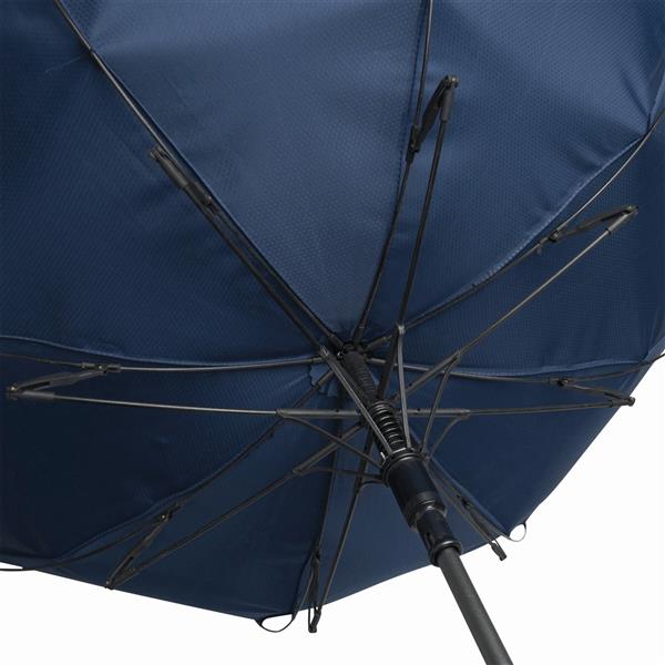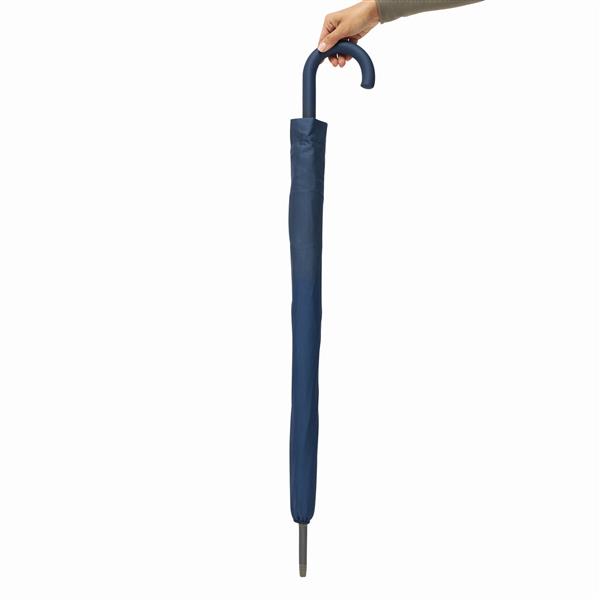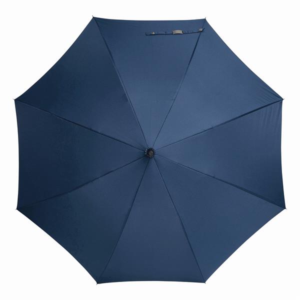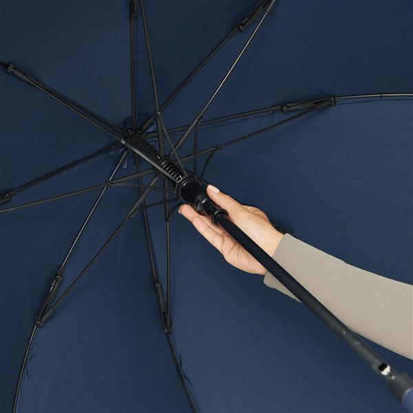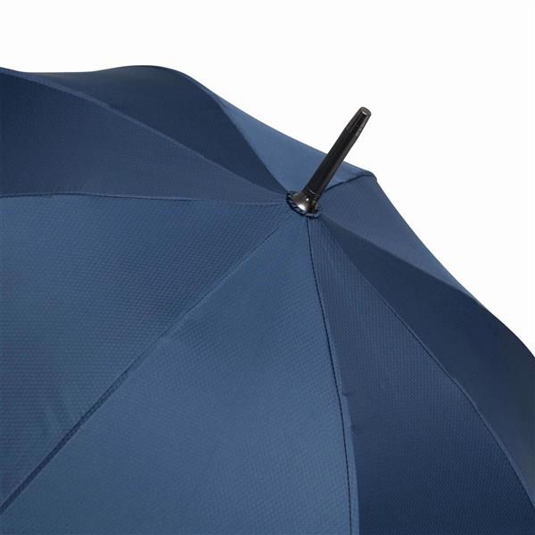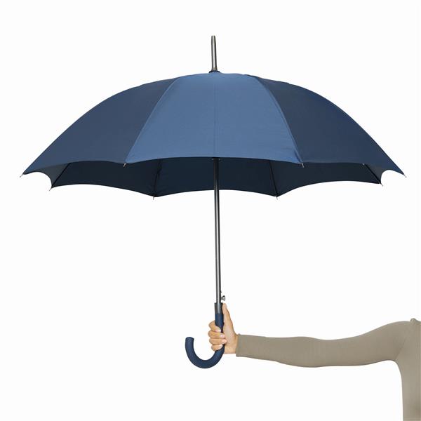 Automatyczny parasol JUBILEE. Aluminiowa laska, szyny z włókna szklanego, metalowe kolce, dopasowany kolorystycznie, gumowany, zaokrąglony uchwyt, poszycie z poliestru z pokrowcem o strukturze plastrów miodu, pasek spinający z zapięciem na zatrzask i metalową płytką na logo. Materiał: Aluminium/Włókno szklane/Poliester Kolor: granatowy Tagi: Parasole,parasole,parasolki