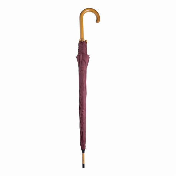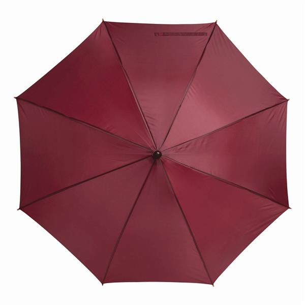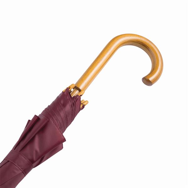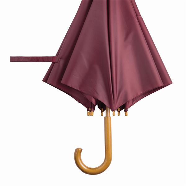 Automatyczny parasol TANGO. Poszycie z poliestru 190 T, czarne, metalowe szyny, drewniana laska i uchwyt w kolorze orzecha włoskiego. Materiał: Drewno/Metal/Poliester Kolor: bordowy Tagi: parasole,parasole