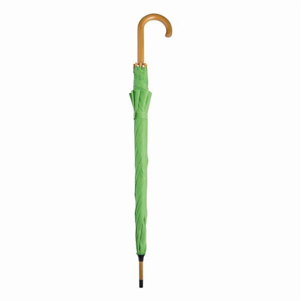 Automatyczny parasol TANGO. Poszycie z poliestru 190 T, czarne, metalowe szyny, drewniana laska i uchwyt w kolorze orzecha włoskiego. Materiał: Drewno/Metal/Poliester Kolor: jasnozielony Tagi: parasole,parasole