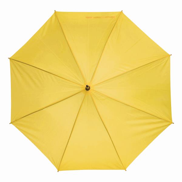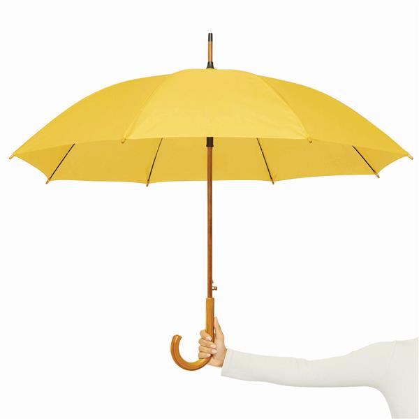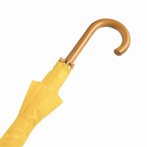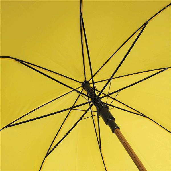 Automatyczny parasol TANGO. Poszycie z poliestru 190 T, czarne, metalowe szyny, drewniana laska i uchwyt w kolorze orzecha włoskiego. Materiał: Drewno/Metal/Poliester Kolor: żółty Tagi: parasole,parasole