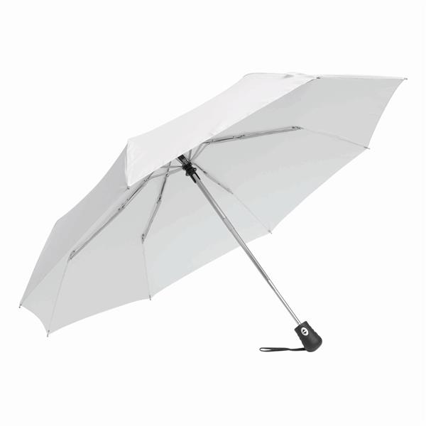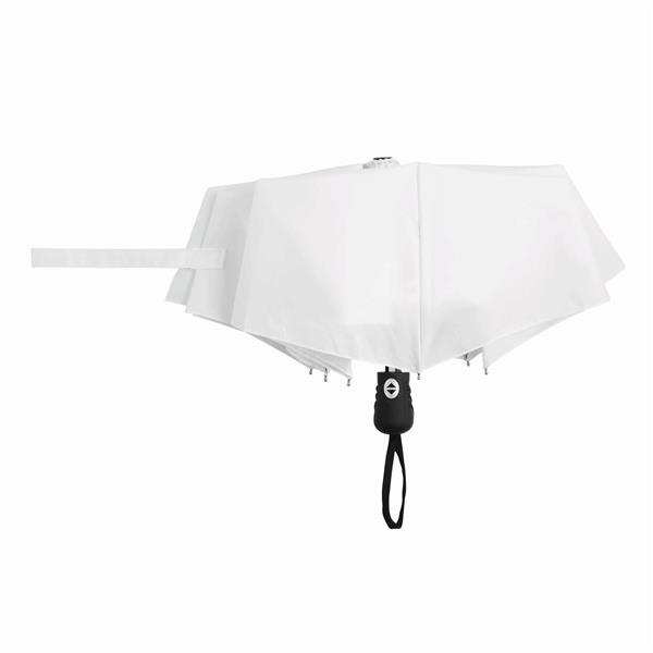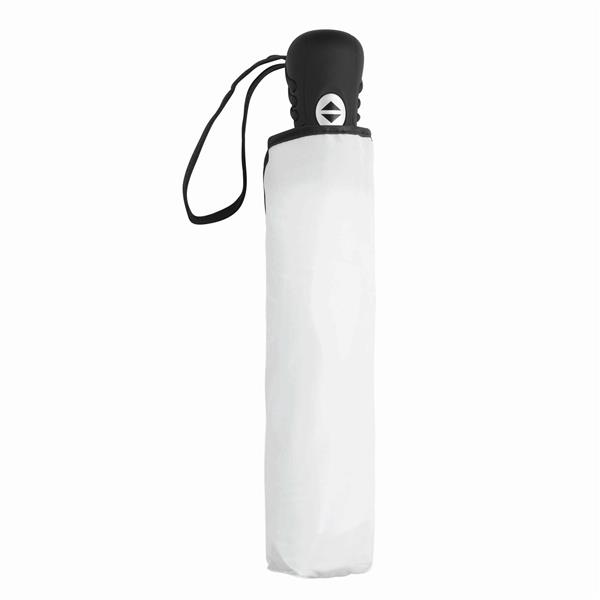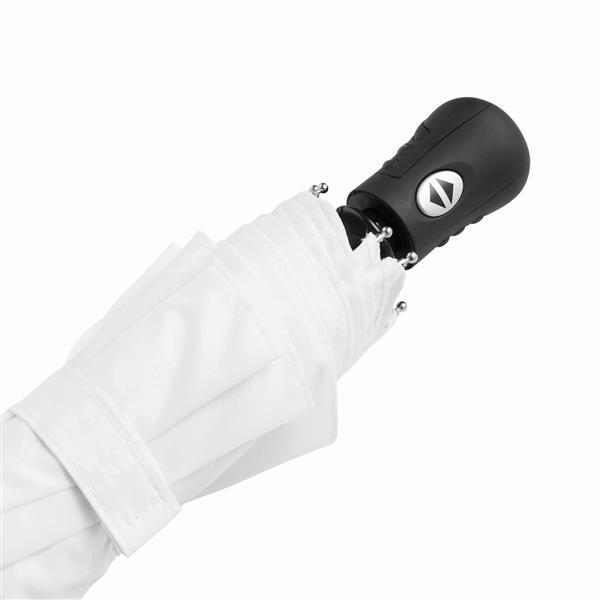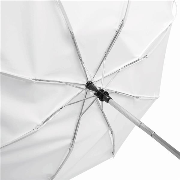 Automatyczny, wiatroodporny, kieszonkowy parasol BORA. Trzyczęściowy, metalowy trzon, szkielet z aluminium, plastiku i włókna szklanego, metalowe końcówki, rączka z gumową powłoką, poliestrowe poszycie, zapinany na rzep. Materiał: Metal/Aluminium/Poliester Kolor: biały Tagi: Parasole,parasole,akcesoria podróżne,parasole składane