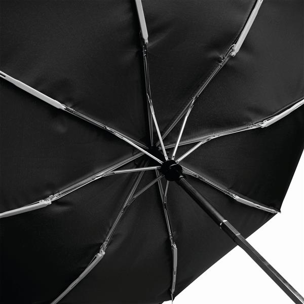 Automatyczny, wiatroodporny, kieszonkowy parasol BORA. Trzyczęściowy, metalowy trzon, szkielet z aluminium, plastiku i włókna szklanego, metalowe końcówki, rączka z gumową powłoką, poliestrowe poszycie, zapinany na rzep. Materiał: Metal/Aluminium/Poliester Kolor: czarny Tagi: Parasole,parasole,akcesoria podróżne,parasole składane