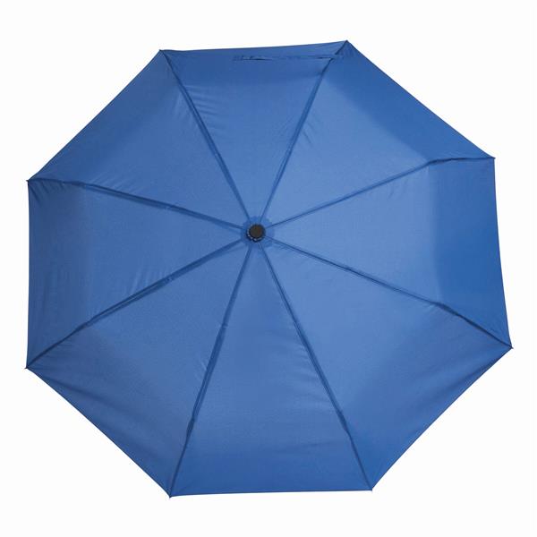 Automatyczny, wiatroodporny, kieszonkowy parasol BORA. Trzyczęściowy, metalowy trzon, szkielet z aluminium, plastiku i włókna szklanego, metalowe końcówki, rączka z gumową powłoką, poliestrowe poszycie, zapinany na rzep.