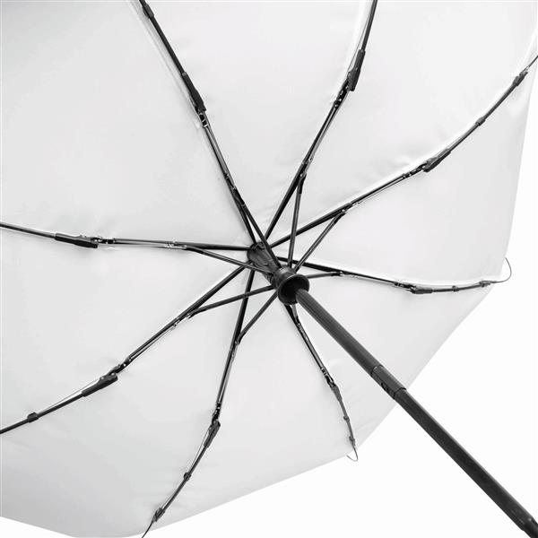 Automatycznie otwierany i składany, wiatroodporny parasol kieszonkowy CALYPSO z pokrowcem w dopasowanym kolorze, trzyczęściową, metalową laską, z szynami z metalu, plastiku i włókna szklanego oraz z metalowymi kolcami. Bambusowy uchwyt z pętelką w dopasowanym kolorze. Poszycie z poliestru pongee wykonanego z powtórnie przetworzonych tworzyw sztucznych / RPET. Zapięcie na rzep. Materiał: Metal/Poliester Kolor: biały Tagi: […]