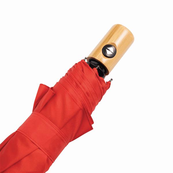 Automatycznie otwierany i składany, wiatroodporny parasol kieszonkowy CALYPSO z pokrowcem w dopasowanym kolorze, trzyczęściową, metalową laską, z szynami z metalu, plastiku i włókna szklanego oraz z metalowymi kolcami. Bambusowy uchwyt z pętelką w dopasowanym kolorze. Poszycie z poliestru pongee wykonanego z powtórnie przetworzonych tworzyw sztucznych / RPET. Zapięcie na rzep. Materiał: Metal/Poliester Kolor: czerwony Tagi: […]