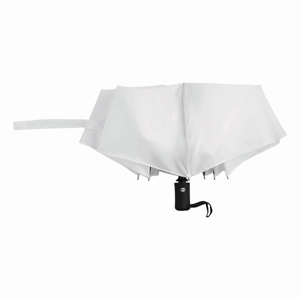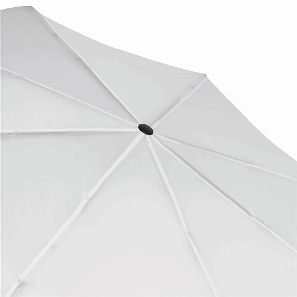 Automatyczny, wiatroodporny parasol kieszonkowy PLOPP z pokrowcem w dopasowanym kolorze. 3-częściowa metalowa laska, szyny z metalu i włókna szklanego, metalowe kolce. Gumowany uchwyt z pętelką, poszycie: poliester, zapinany na rzep. Materiał: Metal/Włókno szklane/Poliester Kolor: biały Tagi: Parasole,parasole,akcesoria podróżne,parasole składane
