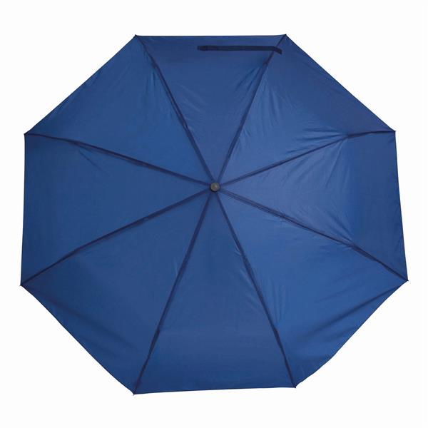 Automatyczny, wiatroodporny parasol kieszonkowy PLOPP z pokrowcem w dopasowanym kolorze. 3-częściowa metalowa laska, szyny z metalu i włókna szklanego, metalowe kolce. Gumowany uchwyt z pętelką, poszycie: poliester, zapinany na rzep. Materiał: Metal/Włókno szklane/Poliester Kolor: niebieski Tagi: Parasole,parasole,akcesoria podróżne,parasole składane