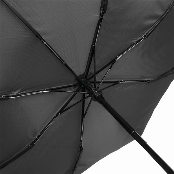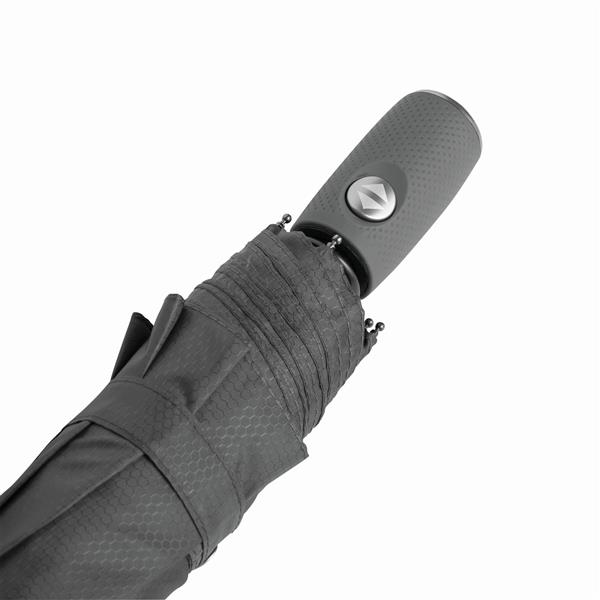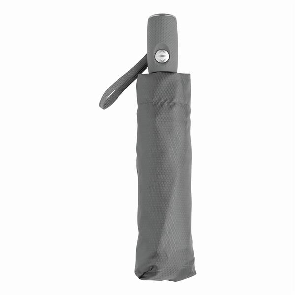 Automatycznie otwierany i składany, wiatroodporny parasol ORIANA z dopasowanym kolorystycznie pokrowcem, 3 częściową metalową laską, z szynami z metalu, plastiku i włókna szklanego, gumowany uchwyt z dopasowanym kolorystycznie paskiem na nadgarstek, poszycie z poliestru pongee z pokrowcem o strukturze plastrów miodu, z zapięciem na zatrzask.
