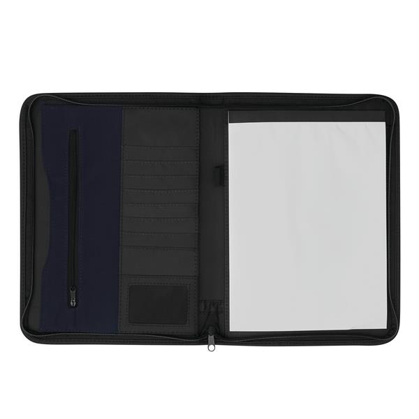 Teczka konferencyjna AVANTI ZIP z blokiem w formacie A4, szlufką na długopis, kilkoma kieszonkami i zamkiem błyskawicznym.