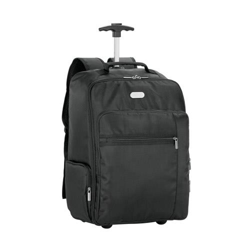 Plecak na laptopa z kółkami, który łączy w sobie zalety plecaka i walizki na kółkach, ułatwiając transport i zapewniając przestronne i dobrze rozplanowane miejsce do przechowywania. Zawiera zdejmowaną metalową płytkę z magnesem, którą można łatwo dostosować do własnych potrzeb. Płytka z grawerowanym laserowo napisem dostarczana jest oddzielnie od walizki.Materiał zewnętrzny: poliester 1680D i 300DMateriał wewnętrzny: poliester 210DKieszeń na komputer: 17”Pojemność (L): 28Komory: 1 komora głównaKieszenie zewnętrzne: 2 kieszenie przednie i 2 kieszenie boczne zapinane na zamekDodatkowe cechy: wyściełana osłona kółek, wysuwana metalowa rączka, zdejmowana metalowa płytka do personalizacjiWymiary: 330 x 490 x 220 mm | Metalowa płytka: 50 x 20 mm