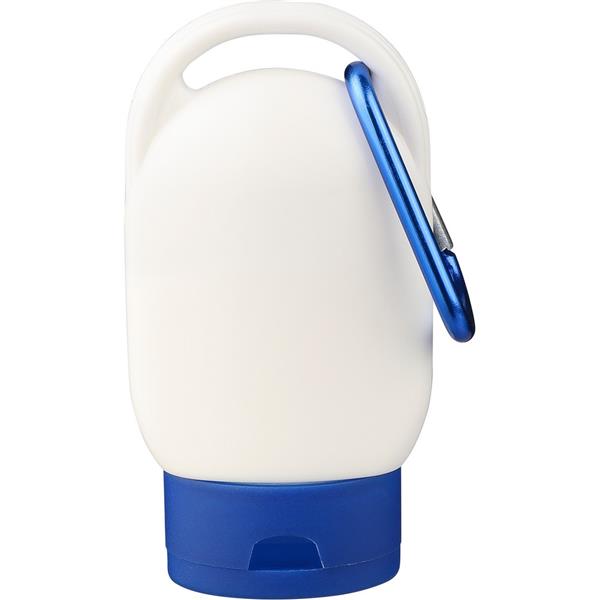 Balsam do opalania o pojemności 30 ml z karabińczykiem w kolorze dopasowanym do koloru zakrętki, z filtrem przeciwsłonecznym SPF30, co oznacza 97% ochronę przeciwsłoneczną