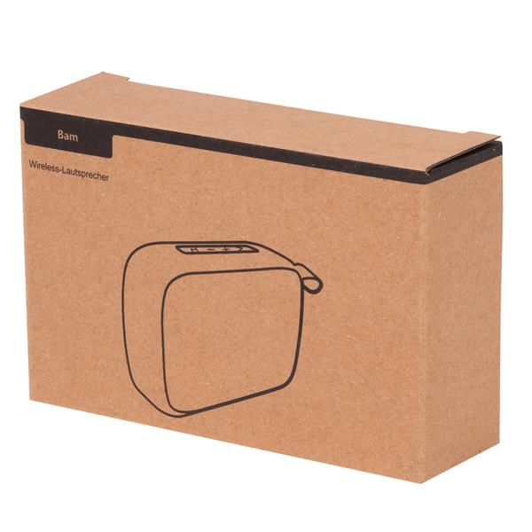 Głośnik bezprzewodowy BAM o muzycznej mocy wyjściowej 3 W. Do parowania z urządzeniami obsługującymi łączność bezprzewodową, takimi jak telefon komórkowy, bezprzewodowy odtwarzacz MP3 lub tablet. Odtwarza pliki MP3 z karty microSD lub dysku USB (brak w zestawie). Moc wejściowa 5V/1A. Akumulator o dużej pojemności 300 mAh. Kabel do ładowania ze złączem Micro-USB. Przyciski sterujące na górze, włącznik/wyłącznik z tyłu, od spodu nóżki antypoślizgowe.