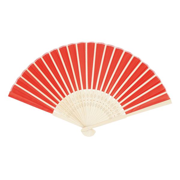 Składany wachlarz BAMBOO COOL: bambusowy uchwyt i trwałe bambusowe listwy z pokryciem z poliestru pochodzącego z recyklingu. Materiał: Bambus/Poliester Kolor: czerwony Tagi: Wentylatory,lato,plaża,liście