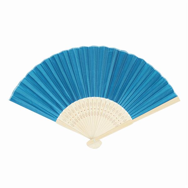 Składany wachlarz BAMBOO COOL: bambusowy uchwyt i trwałe bambusowe listwy z pokryciem z poliestru pochodzącego z recyklingu. Materiał: Bambus/Poliester Kolor: jasnoniebieski Tagi: Wentylatory,lato,plaża,liście
