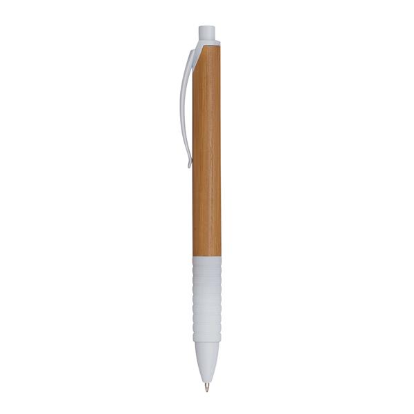 Długopis BAMBOO RUBBER z mechanizmem przyciskowym, elegancki bambusowy korpus, gumowany uchwyt, z niebieskim atramentem. Materiał: Bambus/Plastik Kolor: biały, brązowy Tagi: Długopisy,akcesoria biurowe,przybory do pisania,długopisy