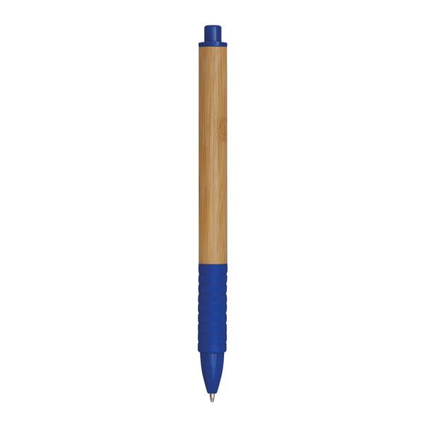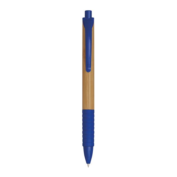 Długopis BAMBOO RUBBER z mechanizmem przyciskowym, elegancki bambusowy korpus, gumowany uchwyt, z niebieskim atramentem.