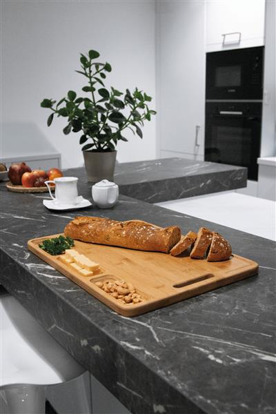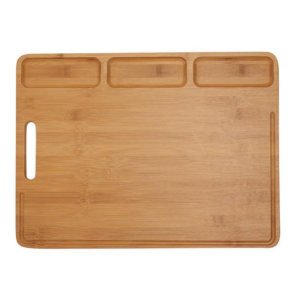 Duża deska do krojenia BAMBOO SERVING z trzema przegródkami i praktycznym wyżłobieniem wzdłuż krawędzi.