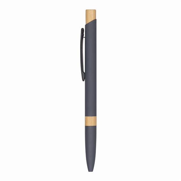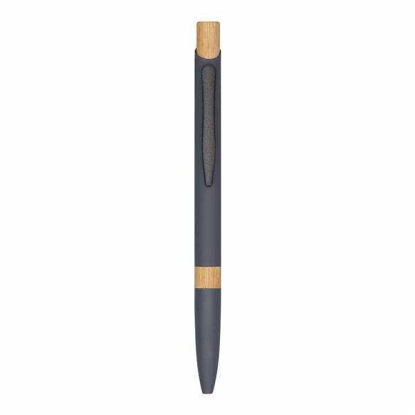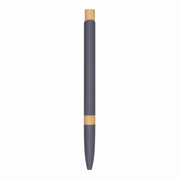 Aluminiowy długopis BAMBOO SYMPHONY: matowa metalowa obudowa, Z recyklingowanego aluminium, bambusowy pierścień w uchwycie i bambusowy przycisk, mechanizm naciskowy, duży wkład z niebieskim tuszem. Materiał: Aluminium z recyklingu /Bambus/Stal Kolor: szary Tagi: Pióra kulkowe,ołówki,akcesoria biurowe,przybory do pisania