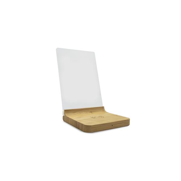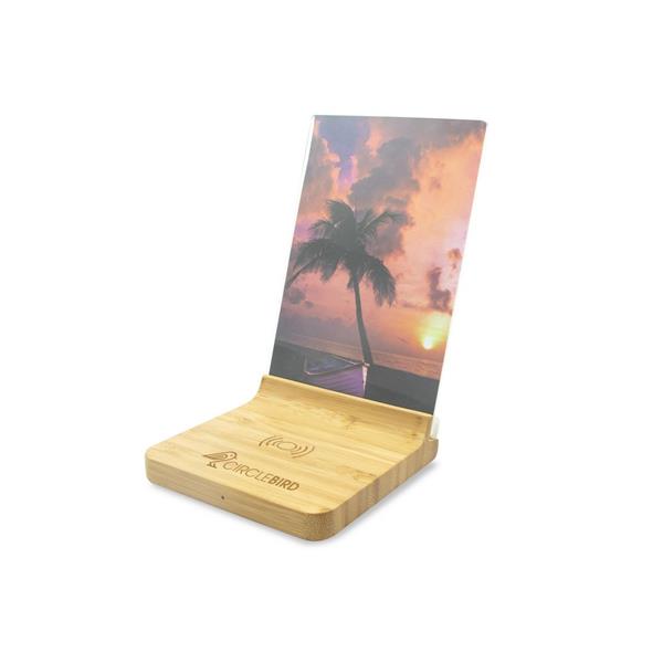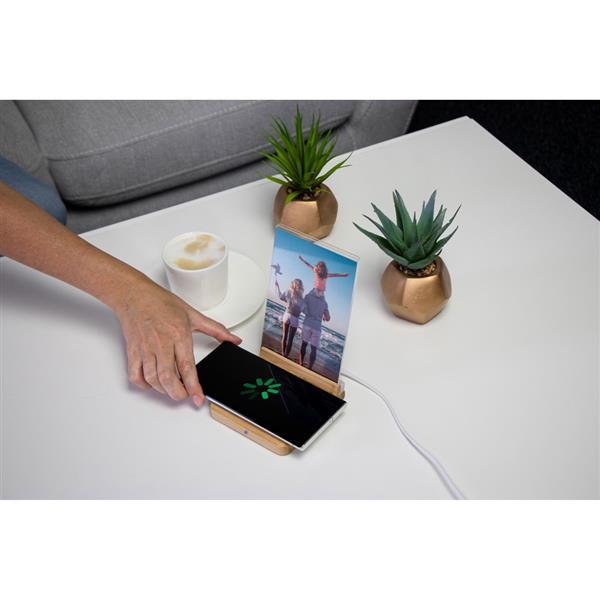Bambusowa ładowarka bezprzewodowa 10W, ramka do zdjęć (10 x 15 cm), wejście USB typu C, kabel USB typu C w komplecie
