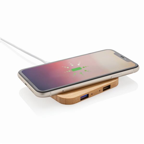 Ładowarka bezprzewodowa 5W, wykonana w 100% z bambusa z certyfikatem FSC (Forest Stewardship Council), bezprzewodowe ładowanie jest kompatybilne ze wszystkimi urządzeniami posiadającymi możliwość ładowania indukcyjnego, wejście micro USB 5V/2A, wyjście 5V/1A, 5W, kabel 150 cm w komplecie, produkt oraz akcesoria nie zawierają PVC, w pudełku FSC, ślad węglowy produktu: 0,88 kg CO2