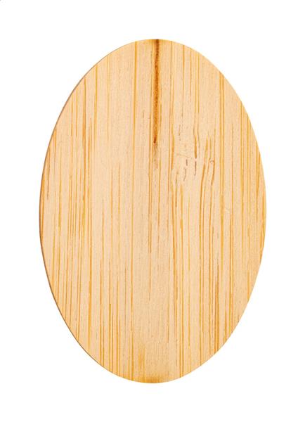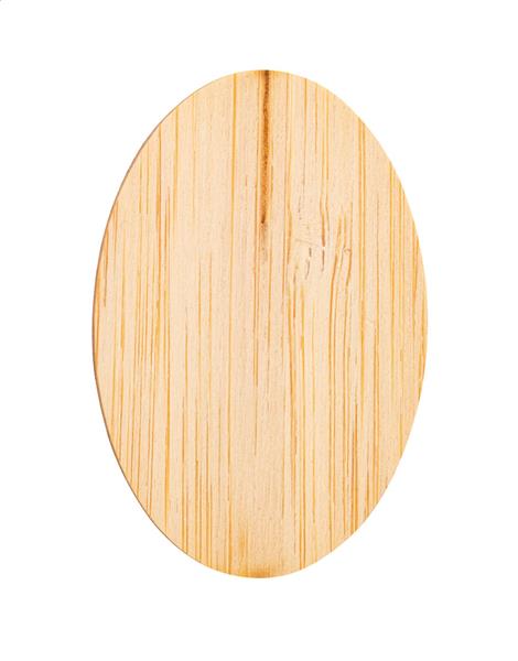 Przypinka ze sklejki bambusowej z magnetycznym pinsem. Description: Przypinka ze sklejki bambusowej z magnetycznym pinsem. Primary Color: naturalny Material 1: Bambus Rozmiar: 35×53 mm Shape: owal