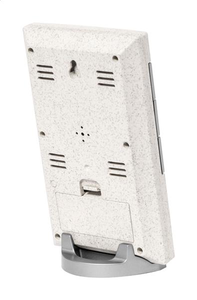 Cyfrowy zegar i stacja pogodowa z plastiku ze słomy pszenicznej z termometrem i wyświetlaczem wilgotności. Działa na 2 baterie AAA, bez baterii.