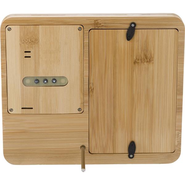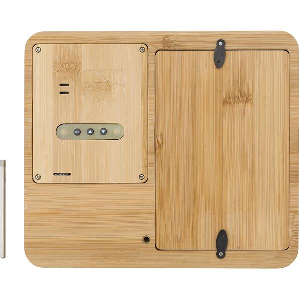 Bambusowa stacja pogodowa, ramka do zdjęć, funkcje: zegar, temperatura, wilgotność powietrza