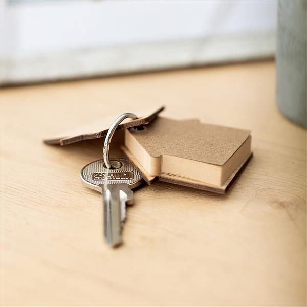 Brelok w kształcie domu z notatnikiem w bambusowej oprawie. 80 karteczek.