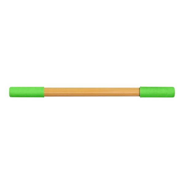 Długopis 2 w 1, „wieczny” ołówek, dzięki wykorzystaniu specjalnej wolnościerającej się końcówki długość pisania ołówka to około 1500 metrów, naostrzony, bambusowy trzon, dwie kolorowe zatyczki wykonane z papieru