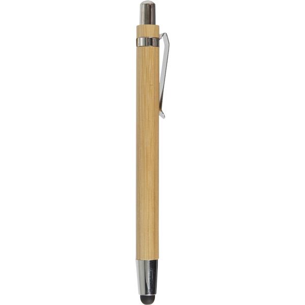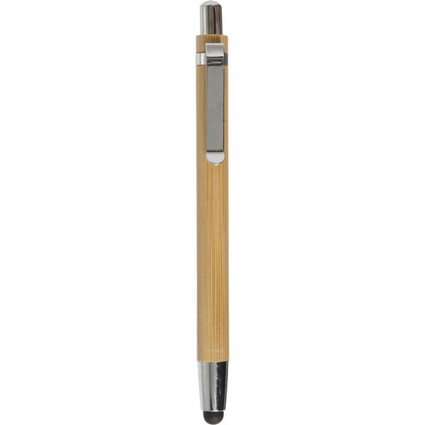 Bambusowy długopis, touch pen, ze srebrnym klipem i końcówką