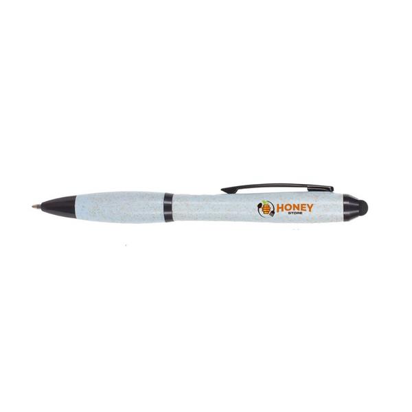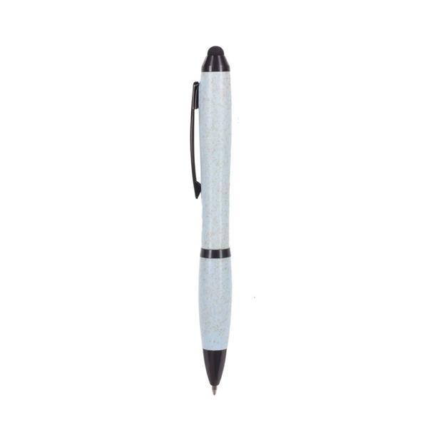 Długopis, touch pen, kolorowy trzon z włókna bambusowego, metalowy klip, czarne elementy