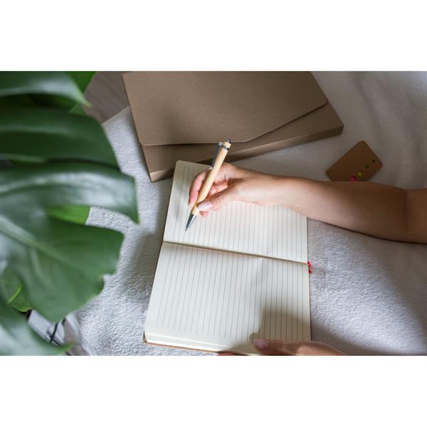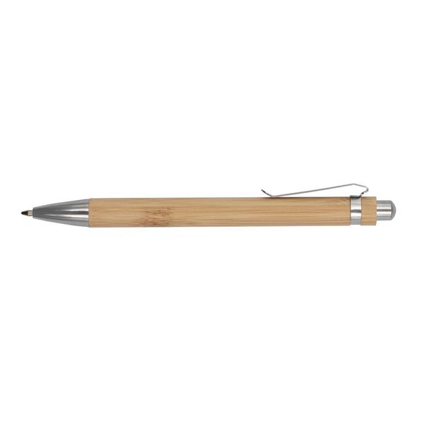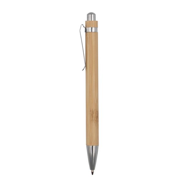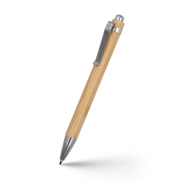 Długopis z trzonem wykonanym z bambusa, metalowe elementy, wkład w niebieskim kolorze, produkt wykonany z bambusa, metalu i plastiku