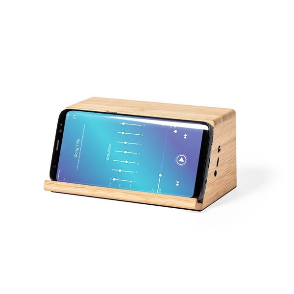 Bambusowy głośnik bezprzewodowy BT 5.0 3W, bezprzewodowa ładowarka 10W, działa z telefonami posiadającymi możliwość ładowania indukcyjnego, wejście micro USB 5-9V/1.5-1.67A, ładowany przez USB, kabel ładujący w komplecie