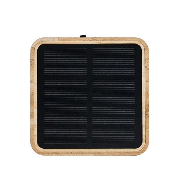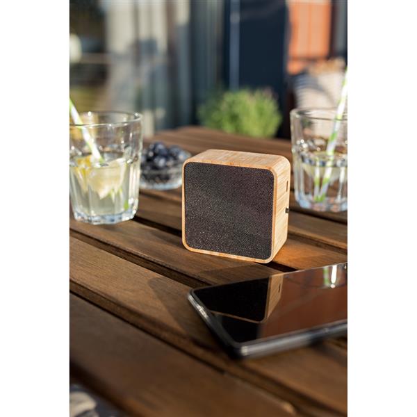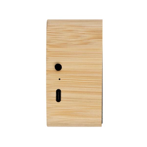 Głośnik bezprzewodowy B’RIGHT, BT 5.1 3W, obudowa wykonana z bambusa, posiada panel słoneczny umożliwiający ładowanie głośnika, funkcja odbierania połączeń, bateria 500 mAh, czas pracy: ok. 4h, ponowne naładowanie za pomocą kabla w ok. 3-4h, zasięg do 10 m, wejście USB-C, ładowany przez USB, kabel USB-C w komplecie