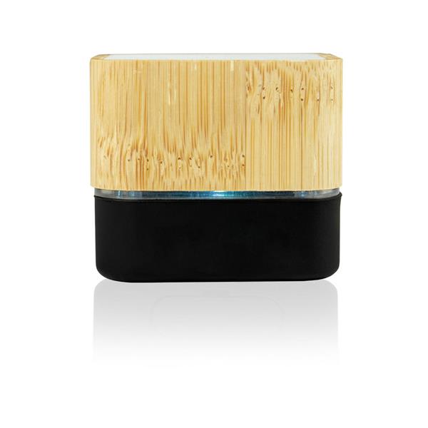 Głośnik bezprzewodowy BT 5.0 3W z bambusową obudową i kolorowym podświetleniem, DC 5V, ładowany przez USB, czytnik kart TF/micro SD, zasięg do 10 m, kabel micro USB w komplecie