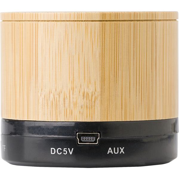 Bambusowy głośnik bezprzewodowy, bateria 300 mAh umożliwia odtwarzanie muzyki do 2,5 h, kabel w komplecie