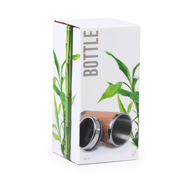 Kubek termiczny 500 ml, podwójne ścianki, bambusowe elementy na zewnątrz, wnętrze ze stali nierdzewnej, klasa termiczna: D