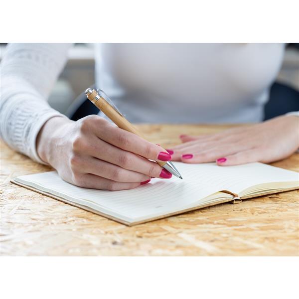 Ołówek, dzięki wykorzystaniu specjalnej wolnościerającej się grafitowej końcówki długość pisania ołówka to około 20 000 metrów w porównaniu z tradycyjnym ołówkiem którego długość pisania to około 200 metrów, notatki można zmazać standardową gumką do mazania, ślad węglowy produktu: 0,03 kg CO2 Strona w katalogu: online Materiał produktu: bambus FSC®, metal Wymiary produktu: 13,8 x Ø1,5 […]