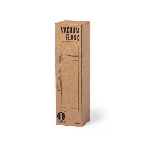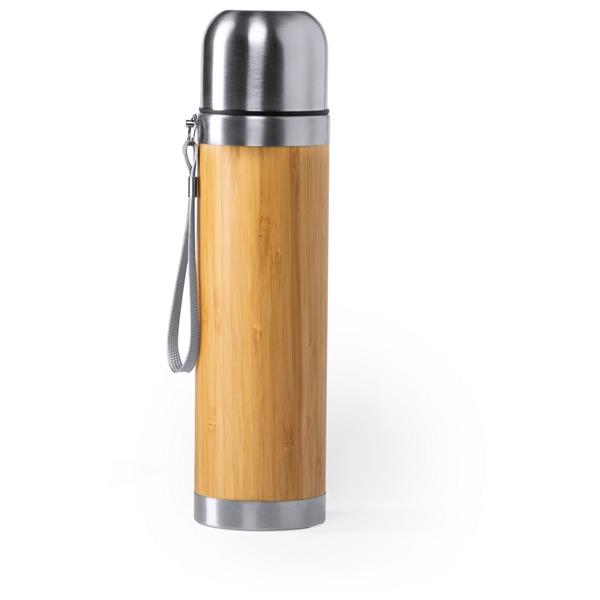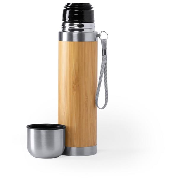 Bambusowy termos 420 ml z paskiem na rękę, podwójne ścianki ze stali nierdzewnej z próżnią między ściankami, klasa termiczna: A +leakproof