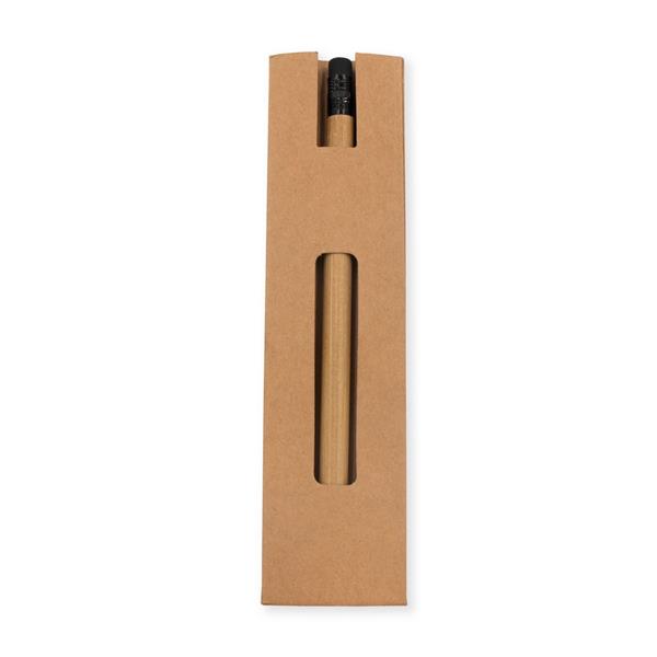 „Wieczny” ołówek z gumką B’RIGHT, naostrzony, bambusowy trzon, dzięki wykorzystaniu specjalnej wolnościerającej się grafitowej końcówki długość pisania ołówka to około 20 000 metrów, kartonowe etui w komplecie