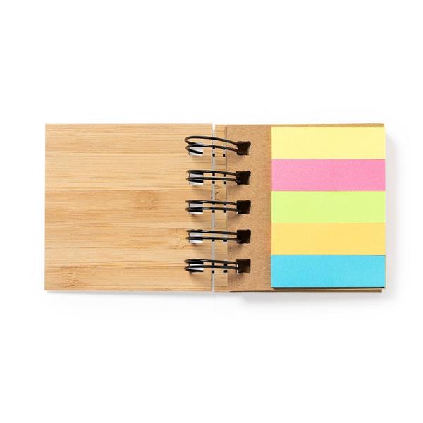 Zestaw do notatek w bambusowej okładce, karteczki samoprzylepne, 75 karteczek samoprzylepnych 5 x 7 cm, 125 mini karteczek samoprzylepnych 1,5 x 5 cm
