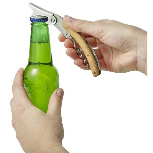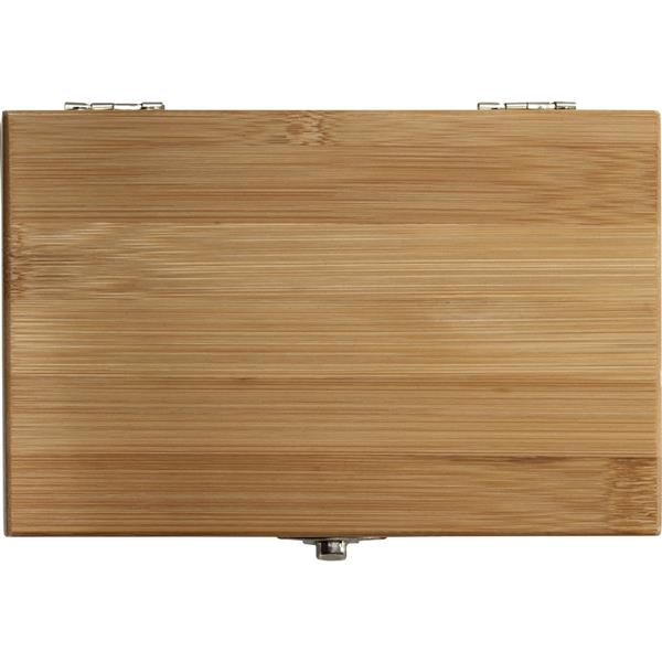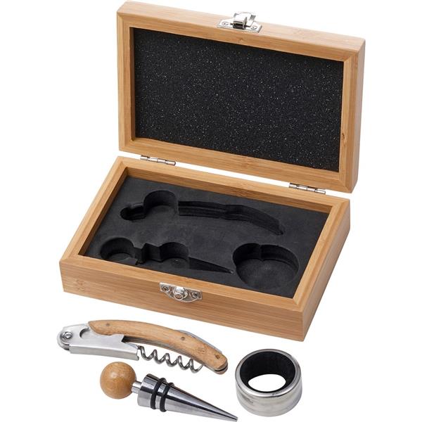 Zestaw do wina, 3 el. w bambusowym pudełku, akcesoria do wina: korkociąg ze stali nierdzewnej, pierścień do wina i zatyczka, z bambusowymi elementami