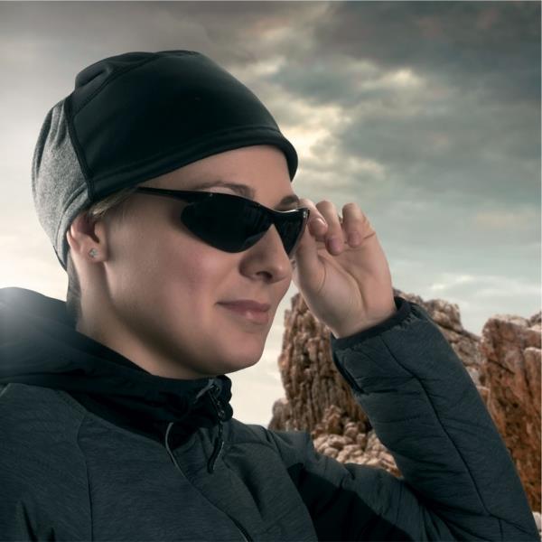 Wielofunkcyjna bandana idealna na zimową pogodę. Posiada gumkę ze ściągaczem, dzięki której można dopasować ją do szyi lub nosić jako czapkę. Wykonana z czarnego, elastycznego polaru (92% poliester, 8% spandex) oraz szarego (100% poliester).