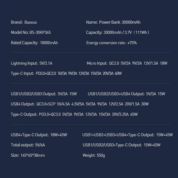 - Porty: 3x USB, 1x USB (QC), USB-C PD, micro USB, Lightning